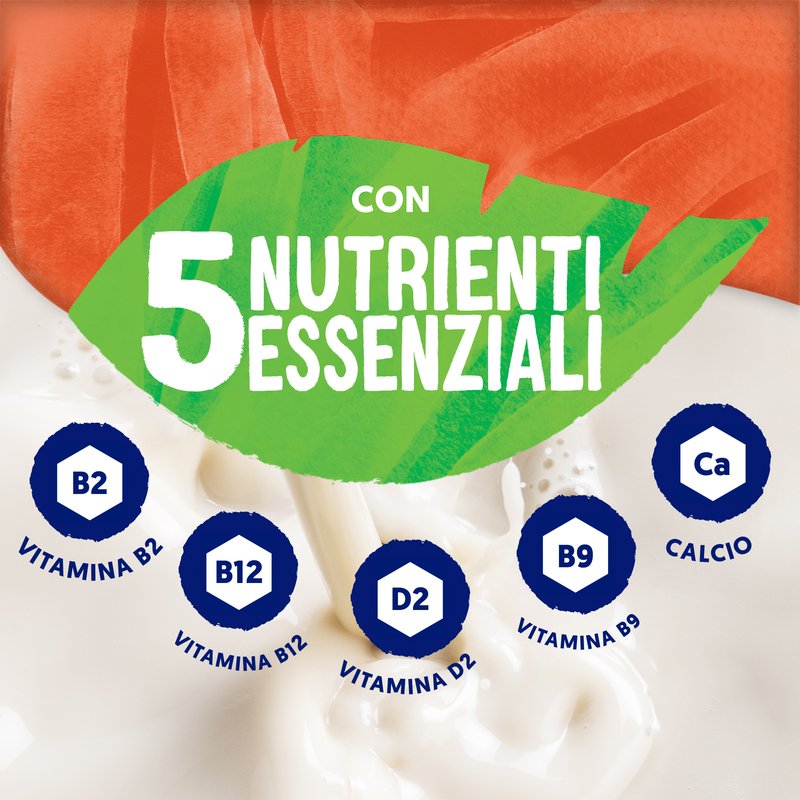 L'immagine del prodotto ha uno scopo puramente illustrativo, il packaging del prodotto potrebbe variare.HEY TU! Lo sapevi che il tuo corpo ha bisogno della giusta quantità di NUTRIENTI per mantenersi in SALUTE? Questa DELIZIOSA bevanda contribuisce all'assunzione quotidiana di 5 tra i NUTRIENTI ESSENZIALI. CALCIO Per ossa in salute¹ VITAMINA B9 Per la tua energia² VITAMINA D2 Per il tuo sistema immunitario³ VITAMINA B2 Come antiossidante⁴ IODIO Per il tuo sistema nervoso⁵