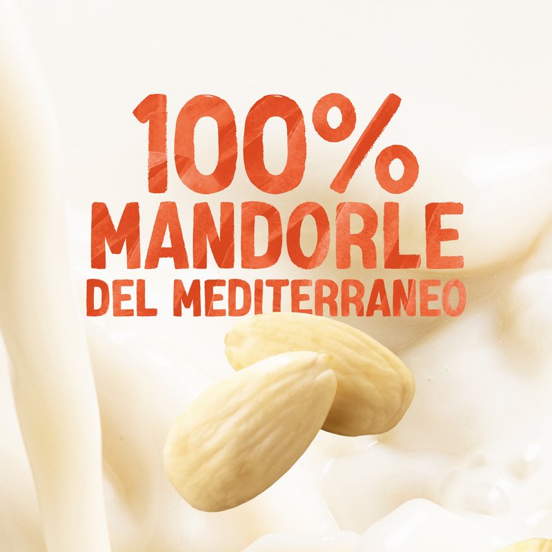Acqua, mandorla (2,3%), calcio (fosfato tricalcico), sale marino, stabilizzanti (farina di semi di carrube, gomma di gellano), emulsionante (lecitine ), aroma naturale (aroma naturale), ioduro di potassio, vitamine B2, B12, D2, E