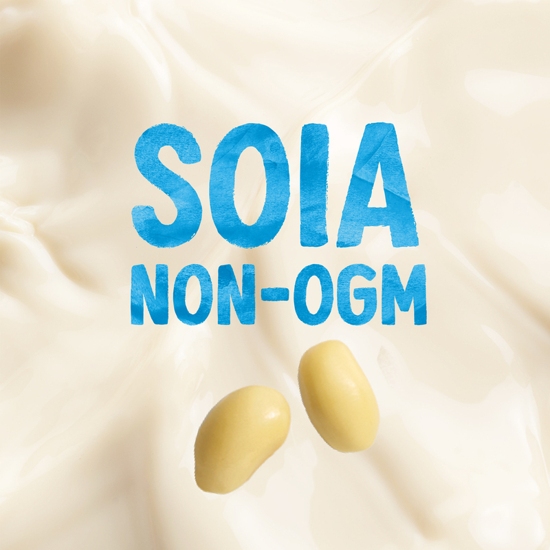 100% VEGETALE GUSTO DELICATO Con il suo GUSTO DELICATO, assapora la nostra bevanda alla soia da sola, setosa e bilanciata, o abbinala a quello che ti piace per scoprire quanto è VERSATILE. SOIA NON OGM.