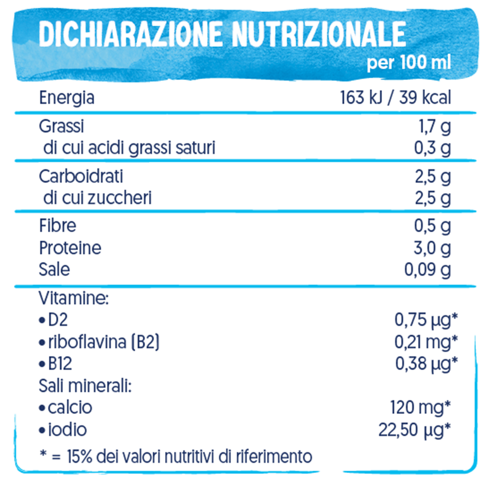 - Fonte di calcio e vitamina D2, B2 e B12. La vitamina B12 contribuisce a ridurre la stanchezza e la fatica.