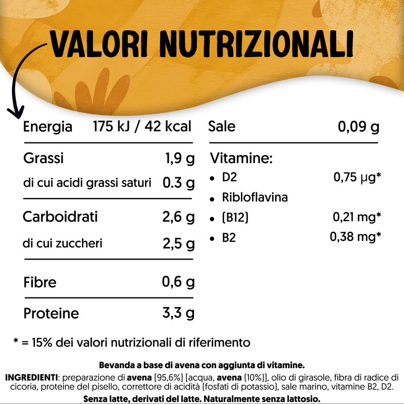 - RICCO IN VITAMINE E DI CALCIO: contiene vitamina B2, B12 e D. La vitamina B12 contribuisce a ridurre la stanchezza e la fatica.
