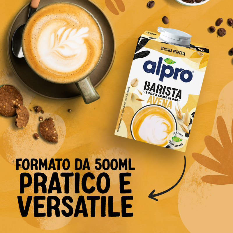 Gustalo come preferisci: bollente o freddo, con o senza schiuma. ALPRO BARISTA Avena è un'alternativa vegetale al latte, si monta con estrema facilità ed è a basso contenuto di zuccheri. Preparato con soli ingredienti 100% vegetali e di qualità, ALPRO BARISTA all'Avena è un drink altamente digeribile e con pochissimi grassi saturi. Ideale per tutta la famiglia, saprà soddisfare i palati di grandi e piccini. Prova anche tutti gli altri prodotti della Linea Barista, l'alternativa al latte 100% vegetale ideale per l'abbinamento con il caffè: ALPRO Barista MANDORLA, ALPRO Barista SOIA. Uno più buono dell’altro! È BUONO DA CAMBIARE IL MONDO!